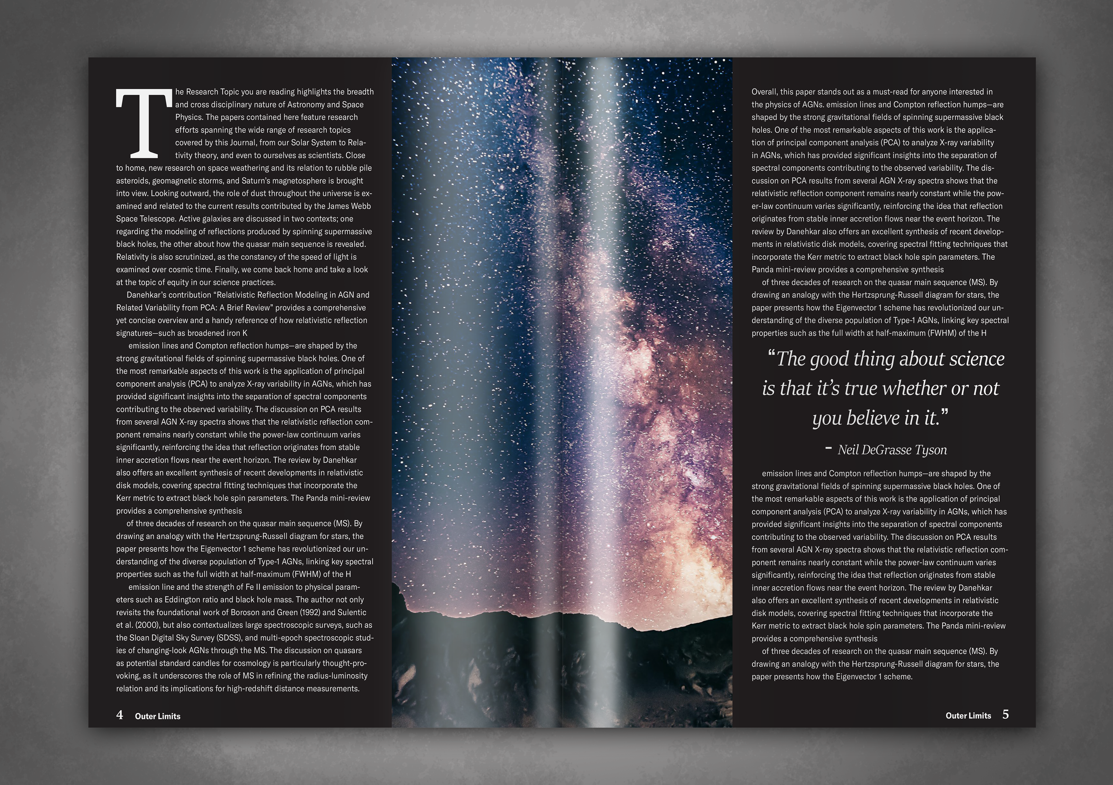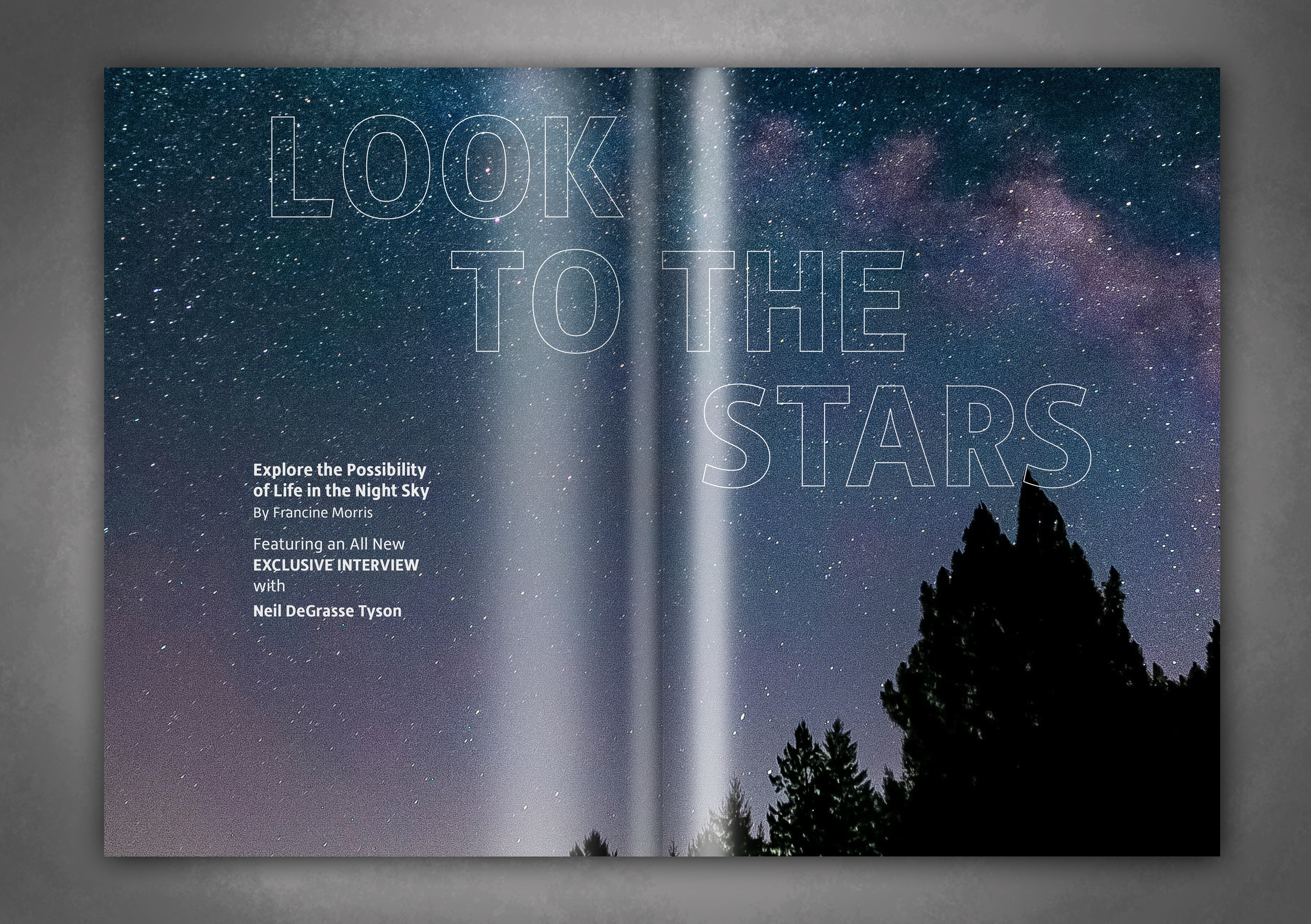 Astronomy and Space Magazine with a focus on bold images that command attention. Strong sans serif typefaces lend a futuristic feeling to the magazine, taking inspiration from science fiction.