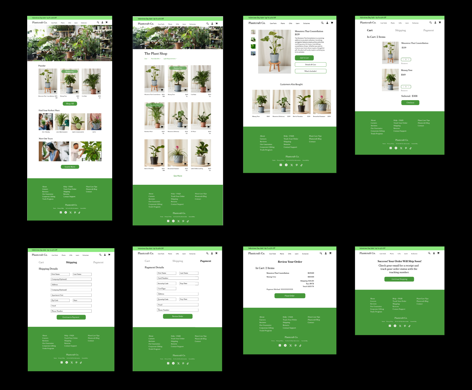 Plantcraftco.com is an e commerce website designed in Figma that allows customers to easily browse a wide variety of high end and affordable house plants.